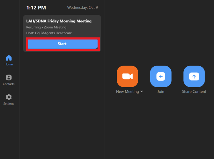 - Select the "Start" button next to the scheduled meeting on your Zoom dashboard.